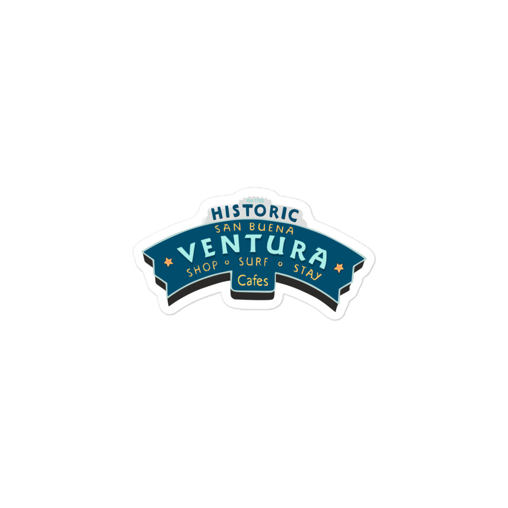 Ventura California sticker. These stickers are printed on durable, high opacity adhesive vinyl which makes them perfect for regular use, as well as for covering other stickers or paint. The high-quality vinyl ensures there are no bubbles when applying the stickers.